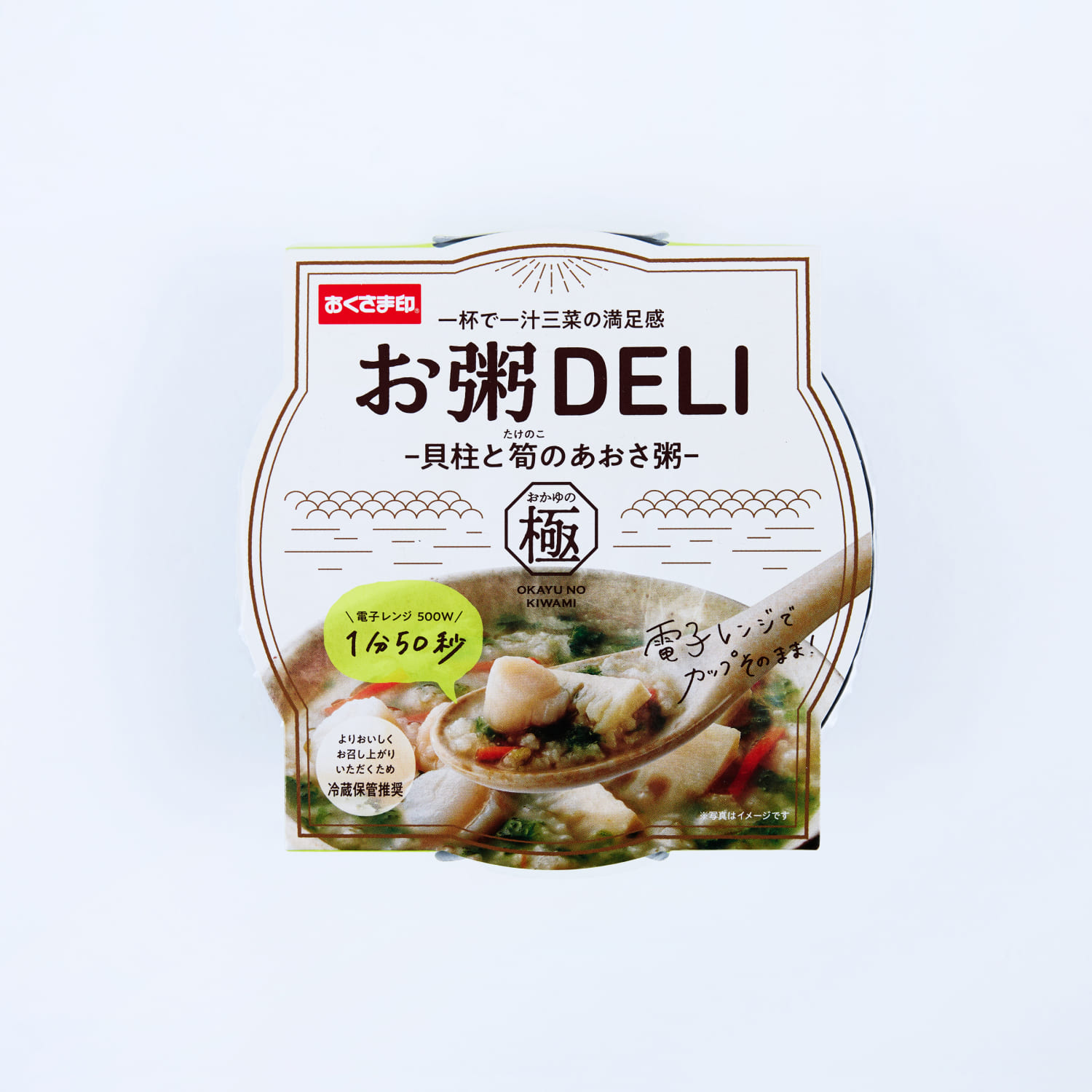 イタヤガイ貝柱(中国産)、精米(国産)、たけのこ、和風調味料、にんじん、ねぎ、ホタテエキスパウダー、アサリエキスパウダー、あおさ、しょうゆ、調味塩、昆布エキス調味料、ガーリックパウダー、香辛料/増粘剤(加工でん粉)、調味料(アミノ酸等)、酸味料、香辛料抽出物、(一部に乳成分・小麦・大豆・豚肉を含む)