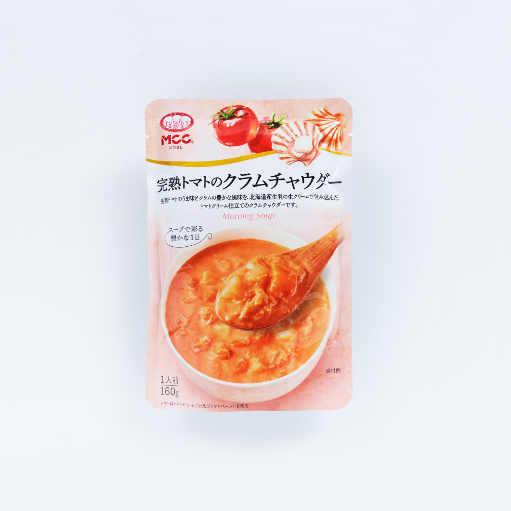 完熟トマトのうま味と香味野菜の甘み、クラムの風味を、北海道産生乳の生クリームがまろやかに包み込みます。じゃがいもやにんじんなど、具材感にもこだわった、トマトクリーム仕立てのクラムチャウダーです。【トマトはトマト・ピューレづけ及びトマトペーストを使用】